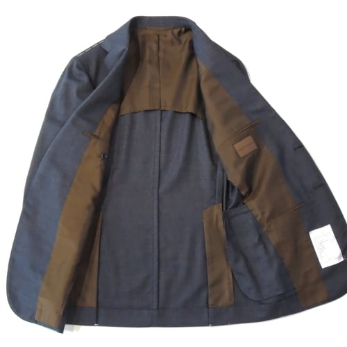・3ツ釦段返り ・ラペル巾9cm ・裏地背抜き ・サイドベンツ ・2フラップポケット ・袖口アンフィニッシュ ・内ポケット×3 ・ナット釦