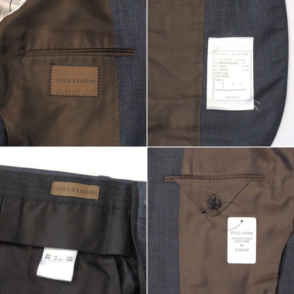 【50%OFF・新品・46,50,52】 STILE LATINO(スティレ ラティーノ)VINCENZO ウールカシミヤバーズアイ シングル3Bスーツ 1プリーツパンツ