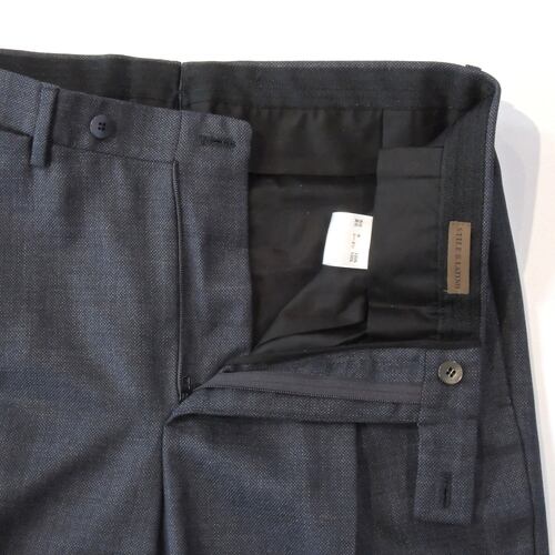 パンツは1アウトプリーツで適度なゆとりがあるすっきりとしたスリムテーパードライン。やや深めの股上と1アウトプリーツの絶妙なゆとりの腰回りで、動きやすく安心感のある履き心地です。裾巾は細めの設定でわたりから裾にかけて綺麗にテーパードされた美しいレッグラインです。